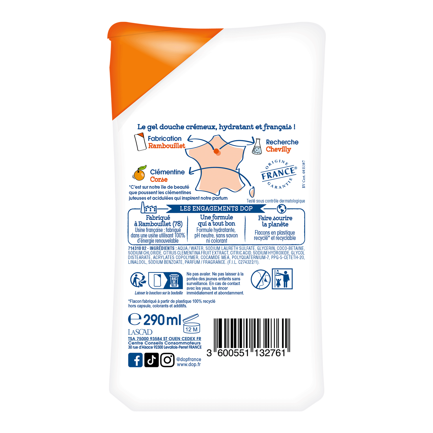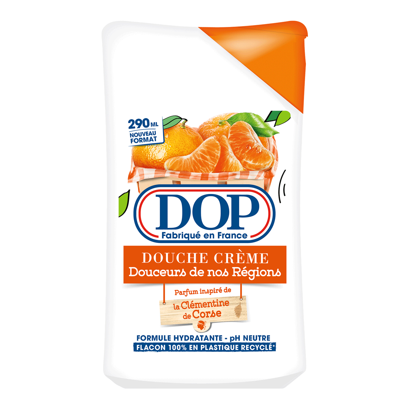 - Au cœur de la Corse, DOP a sélectionné la Clémentine pour sa douche crème au parfum fruité et pétillant qui fera de votre douche un vrai moment de plaisir ! Sa texture de la douche crème DOP se transforme en une mousse onctueuse qui nettoie parfaitement votre peau et lui apporte douceur et soin. Formulée pour toute la famille : pH neutre pour la peau.